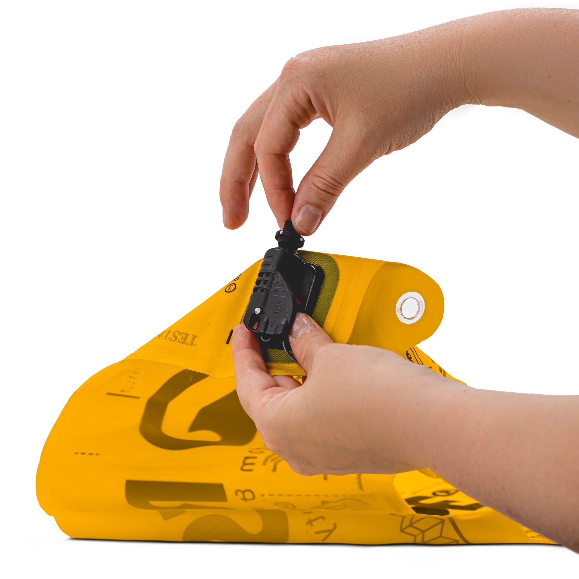 Sólo tienes que inflar la boya con la válvula de la boca antes de empezar a nadar. Esto proporcionará una mejor visibilidad para otras personas en el agua como remeros, botes y salvavidas y le ahorrará el peso del cartucho de CO2.